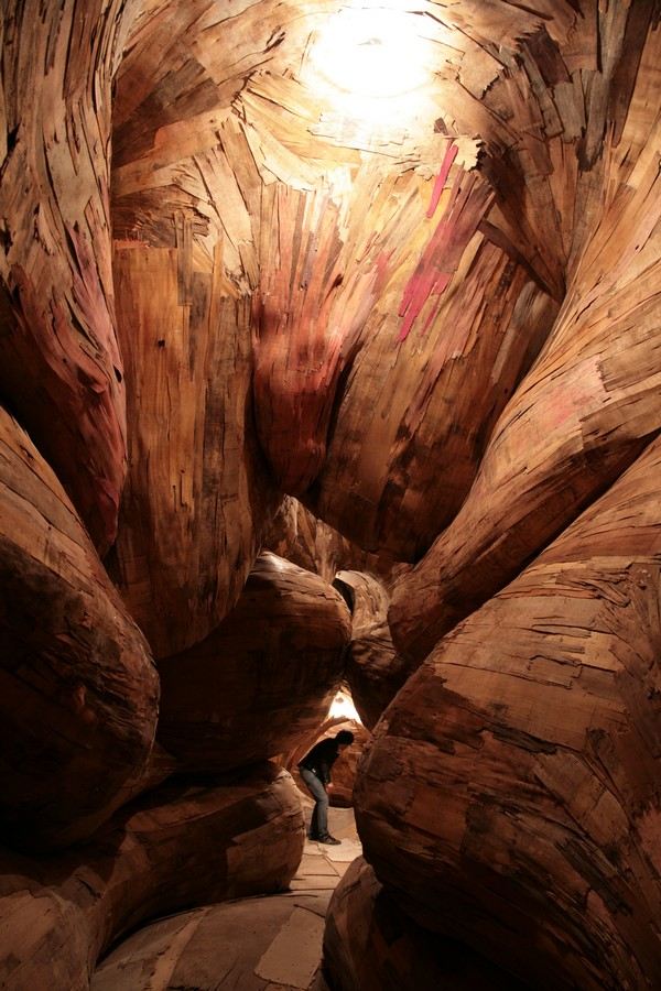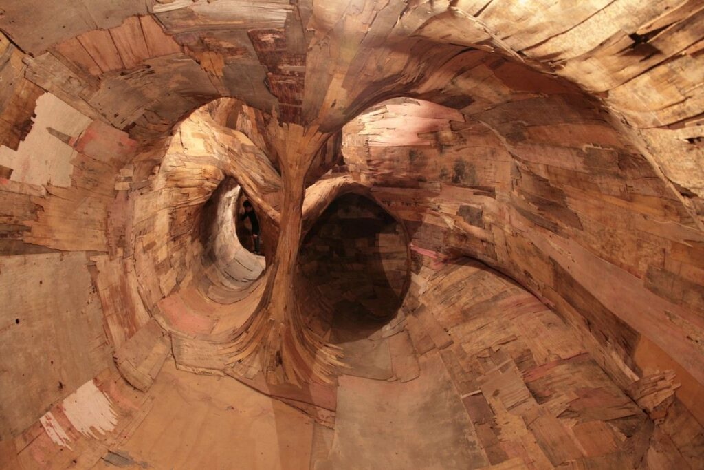 Nato nel 1973 a Ourinhos in Brasile, Henrique Oliveira, che vive e lavora tra Londra e San Paolo, con le sue stupefacenti installazioni e sculture in legno dà spazio e glorifica una natura da troppo sfruttata e repressa dall’uomo. In un momento storico in cui, soprattutto in Brasile (con politiche controverse a favore dell’espansione delle terre coltivate a discapito della foresta amazzonica) si attenta al suo equilibrio, Oliveira lascia che siano proprio gli elementi arborei a prevalere in una rivalsa irruente ed emozionante. Vegetazione e ambiente, a suo opportuno intendere, sono coordinate ineludibili dell’esperienza, dell’esistenza, quindi dell’agire e del pensare. Costituiscono il nostro “luogo”, da considerare non solo in qualità di dato plastico/oggettivo, ma anche quale ambito di assetto dell’interazione sociale, fulcro di benessere, struttura di sentimento, centro di significato.