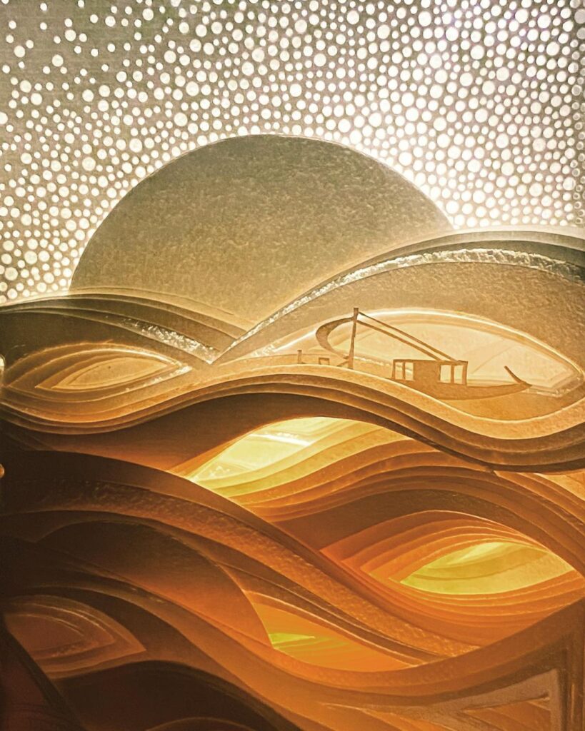 Non a caso, l’artista ricorre al termine “Kami” per descrivere e motivare il suo lavoro, e i “Kami”, ossia le “essenze spirituali”, sono le forze della natura in toto. Secondo la religione shintoista, qualsiasi entità, vivente o non vivente, è espressione di un “Kami”, anzi, è essa stessa un “Kami” in quanto in rapporto di coessenzialità reciproca. Insomma, i “Kami” rappresentano l’infinita frammentazione di un’unica energia cosmica che compone tutte le cose. Paper compresa. Sostiene Ayumi Shibata: “taglio la carta per esprimere la mia gratitudine agli spiriti ‘Kami’. Ogni taglio, ogni pagina è un’orazione. Il mio processo mi aiuta a liberare la mente durante la meditazione o la preghiera. Purifico la mia anima attraverso l’atto del tagliare: così interagendo, posso connettere il mondo spirituale con il nostro”.
