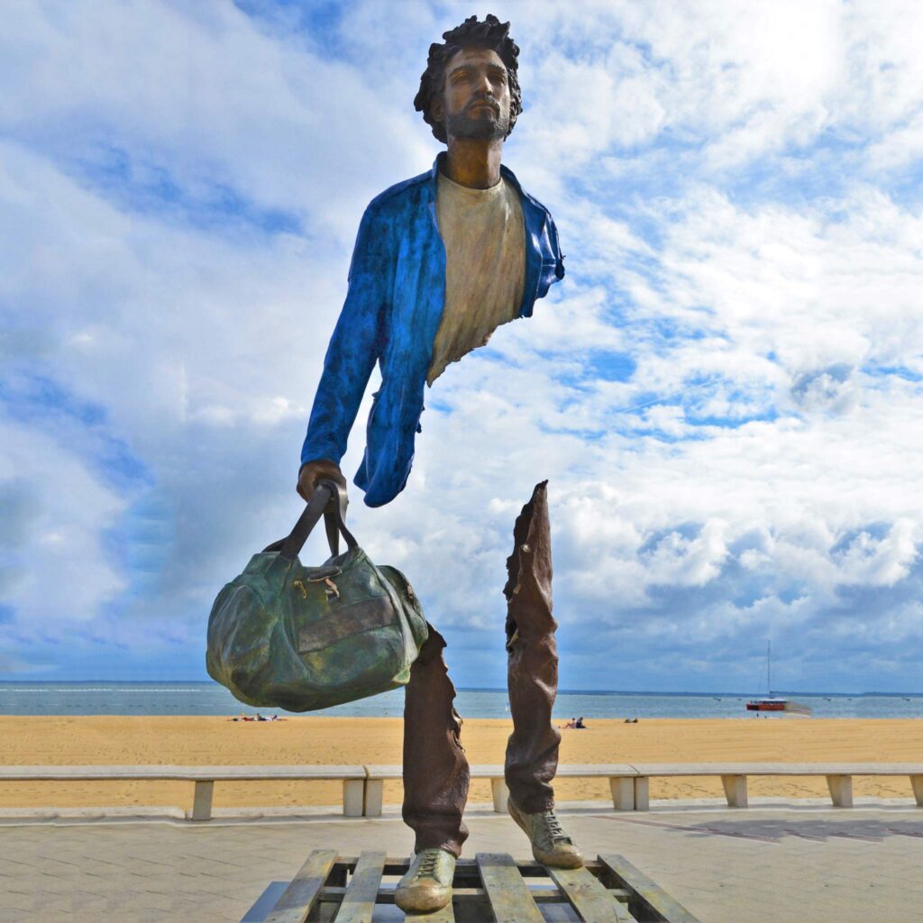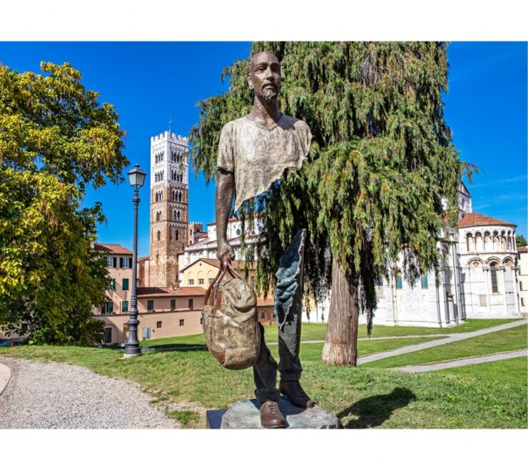 Paiono solisti di un esodo perpetuo. L’opera di questo artista italo-marocchino si intreccia al cammino dei popoli e delle loro culture. E si intreccia vieppiù con l’atmosfera circostante, che s’insinua, accarezza, avvolge gli esuli; li fascia, li scandisce, li illumina. La contaminazione tra scultura e ambiente diventa armonia indissolubile, di più, può aspirare a evolversi in culla di opportunità, humus che invita alla sfida e alla speranza. Tanto che queste creature fiere e sopraffatte sembrano sussurrare, pur se timidamente: alfine la raggiungeremo, una nostra soglia da varcare. Decisiva. Ospitale. Risanante. |
