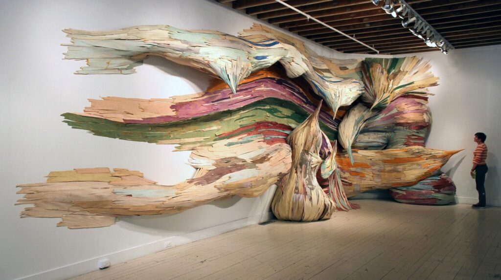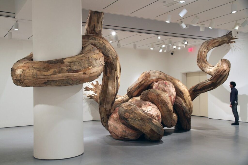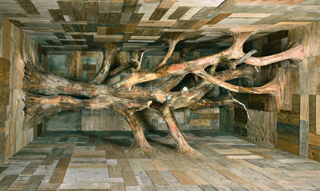 Nato nel 1973 a Ourinhos in Brasile, Henrique Oliveira, che vive e lavora tra Londra e San Paolo, con le sue stupefacenti installazioni e sculture in legno dà spazio e glorifica una natura da troppo sfruttata e repressa dall’uomo. In un momento storico in cui, soprattutto in Brasile (con politiche controverse a favore dell’espansione delle terre coltivate a discapito della foresta amazzonica) si attenta al suo equilibrio, Oliveira lascia che siano proprio gli elementi arborei a prevalere in una rivalsa irruente ed emozionante. Vegetazione e ambiente, a suo opportuno intendere, sono coordinate ineludibili dell’esperienza, dell’esistenza, quindi dell’agire e del pensare. Costituiscono il nostro “luogo”, da considerare non solo in qualità di dato plastico/oggettivo, ma anche quale ambito di assetto dell’interazione sociale, fulcro di benessere, struttura di sentimento, centro di significato.