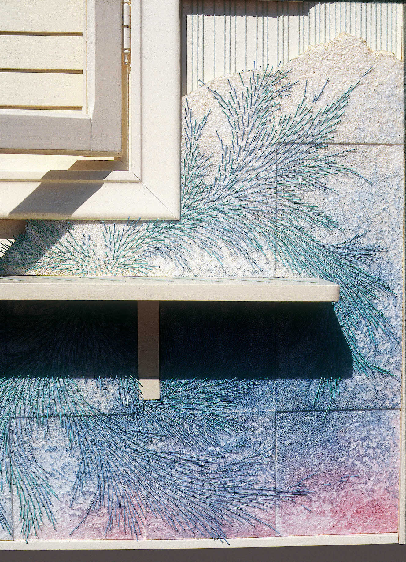 Legno verniciato, polistirolo, chine, spilli.